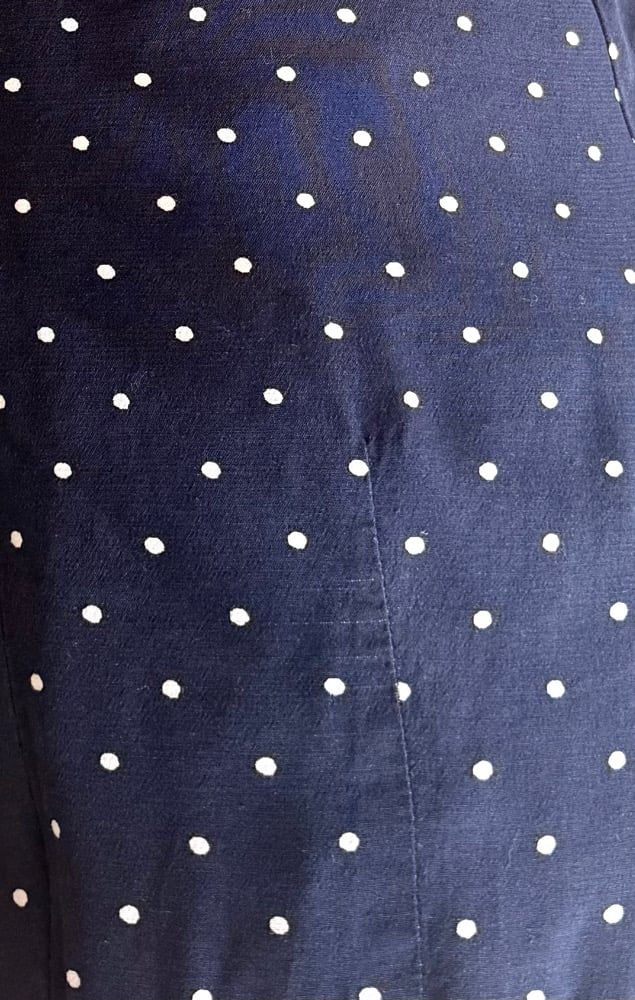1930s Inspired Navy Polka Dot V Neck Dress - Size 8