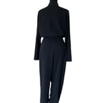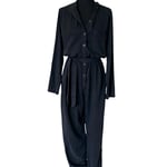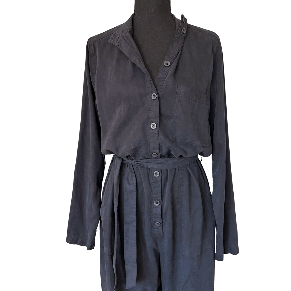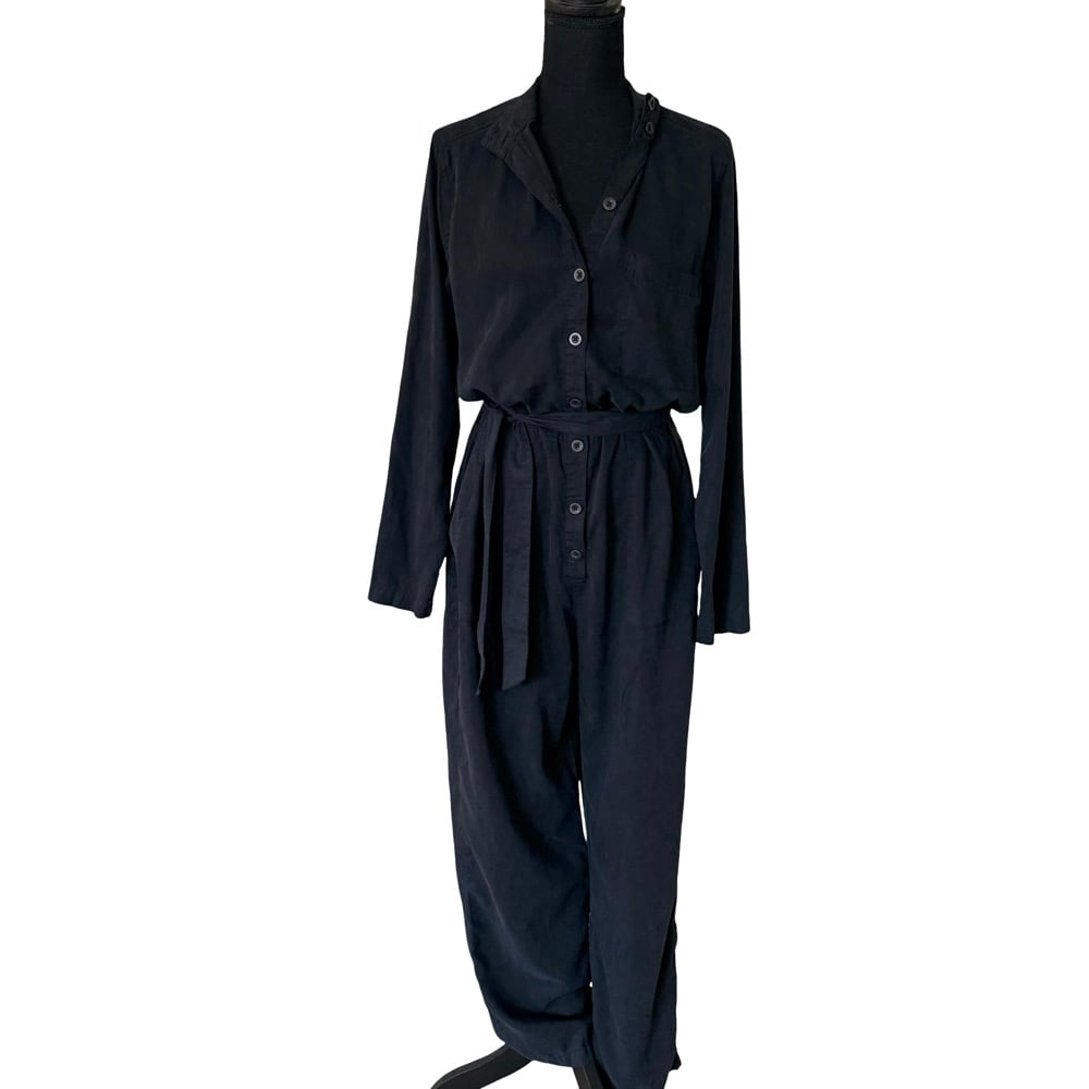 Black Cloth & Stone Button Front Pant Jumpsuit with Waist Tie- Anthropologie Size M