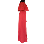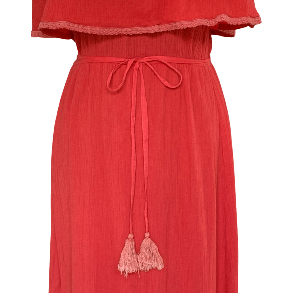 70s Boho Style Deep Coral Off the Shoulder Cotton Gauze Maxi Dress - Medium