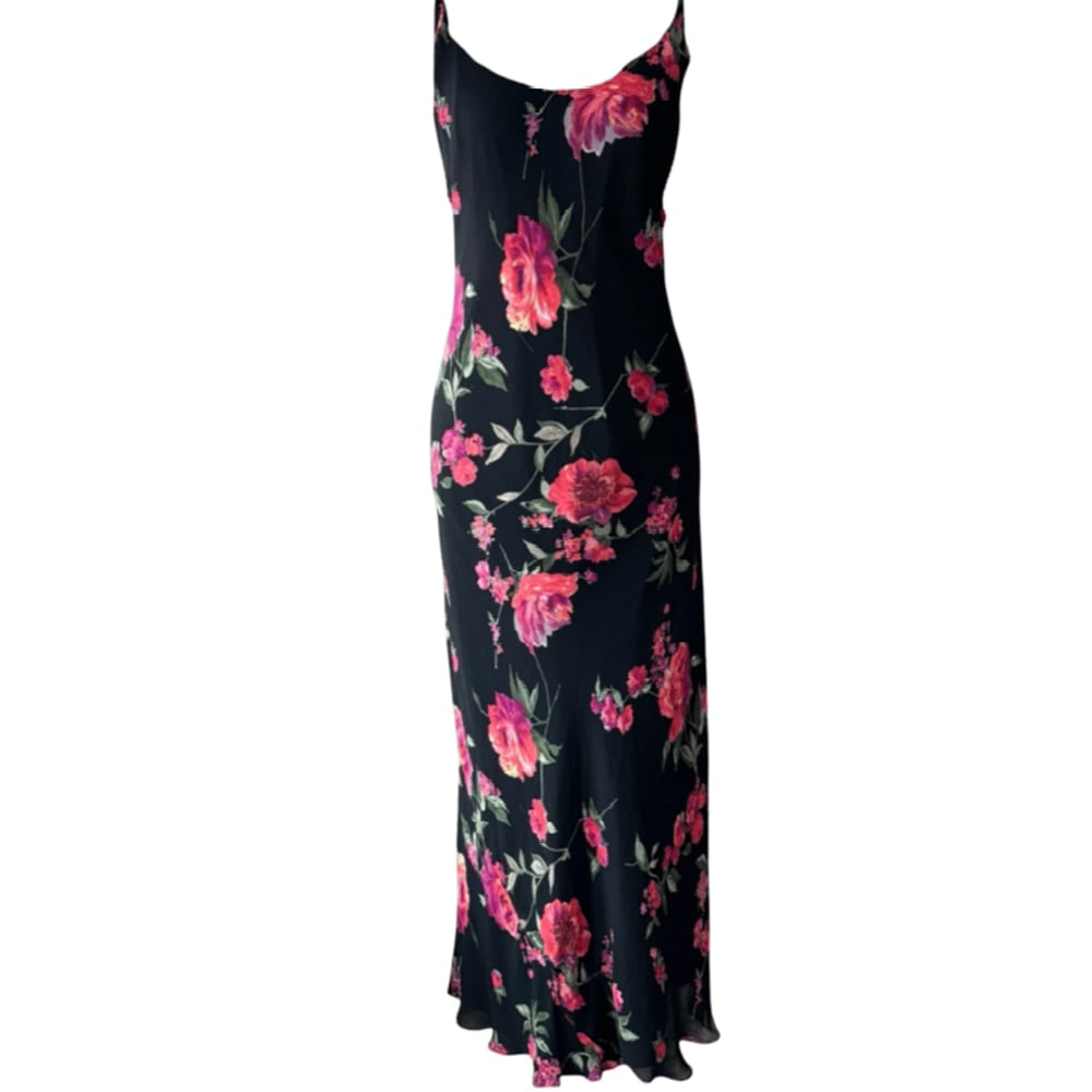 Floral Bias Cut 1930s Style Maxi Dress with Spaghetti Straps - Size 2x
