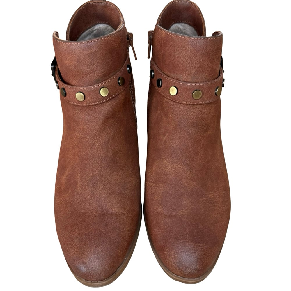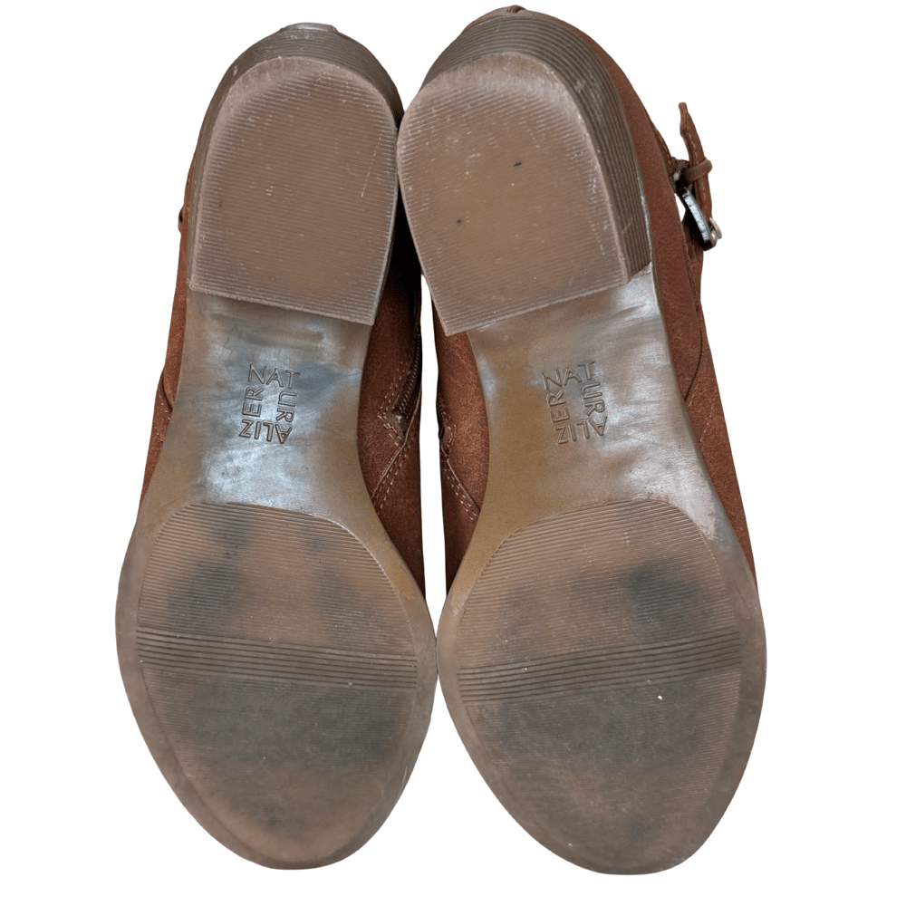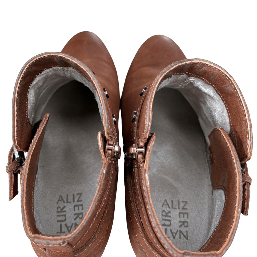 Naturalizer Wilda Brown Flat Studded Ankle Boots with Buckle -Size 9.5