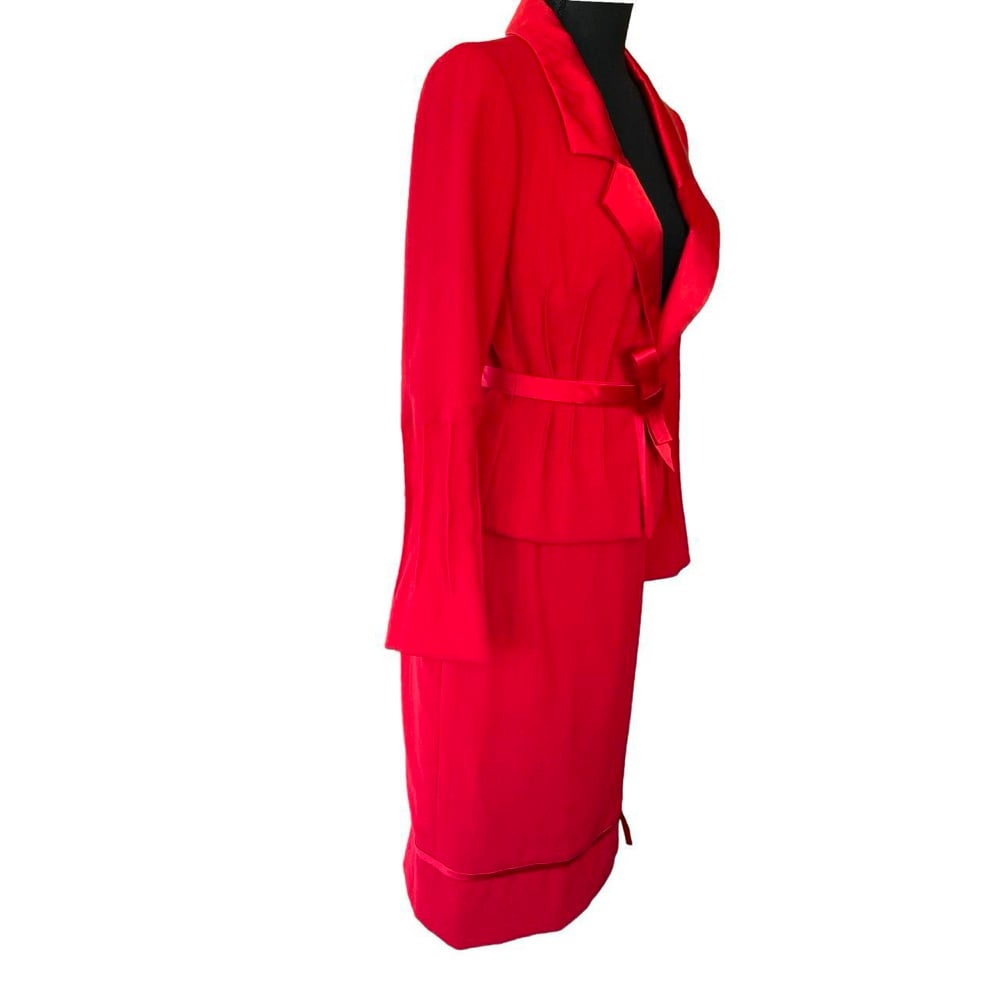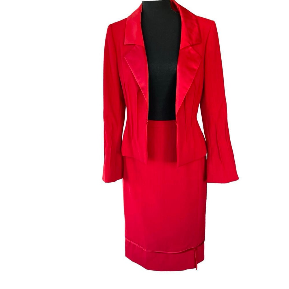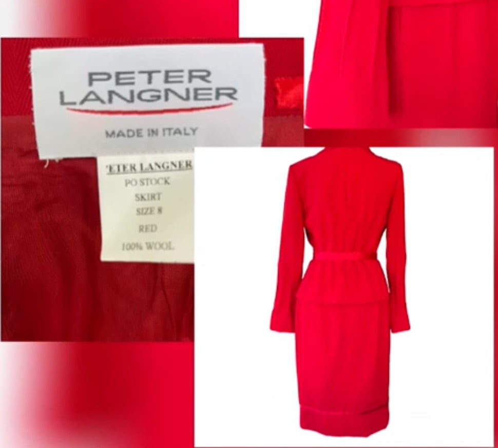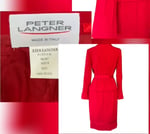 Peter Langner Designer Italian Red Wool Women’s Tailored Jacket & Skirt Size 8