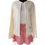 Cute summer shorts, red and white gingham print, elastic waist, slits at side, double adjustable bow tie accents, a line cut, original tag attached, and cotton blend fabric. The cardigan sweater is also listed separately in my shop. :)