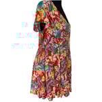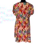 Red Floral Tropical V Neck Button Front Beach A Line Dress with Pockets- Size L - Resort