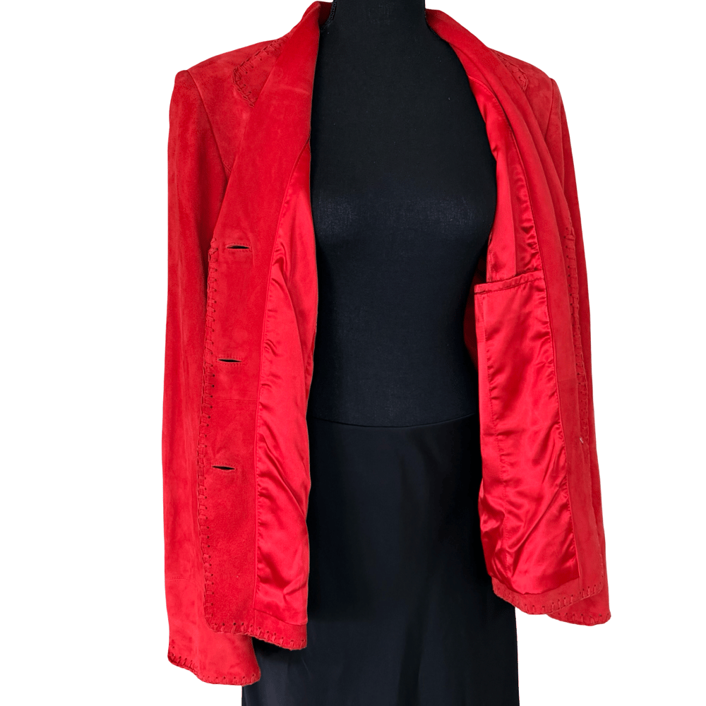 Red Suede Button Front Collared Jacket Size L by Colleizone Juliana