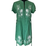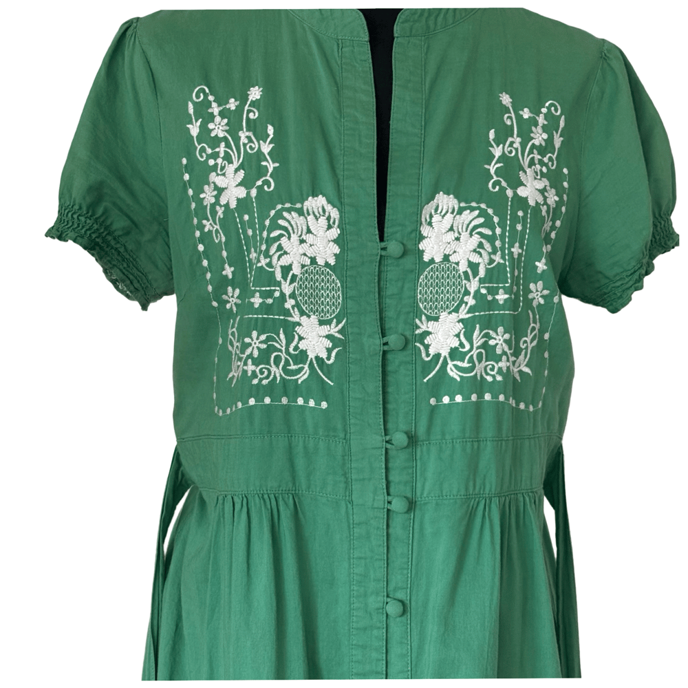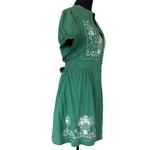 Sunny Girl Green Cotton A Line Embroidered Dress - Size L