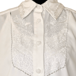 Vintage 1980s does 1940s White Embroidered Lace Button Up Short Sleeve Top - Size 10