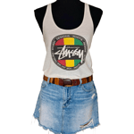 Vintage 1990s Stussy White Tank Top - Rydim for Jah Irie Feeling - Size Small