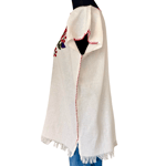 Unique Details: Colorful hand embroidered floral design at front top, embroidery at side seams and collar, boxy fit, imported from Mexico, seam at hem with natural cotton fringe, and cream color cotton.
