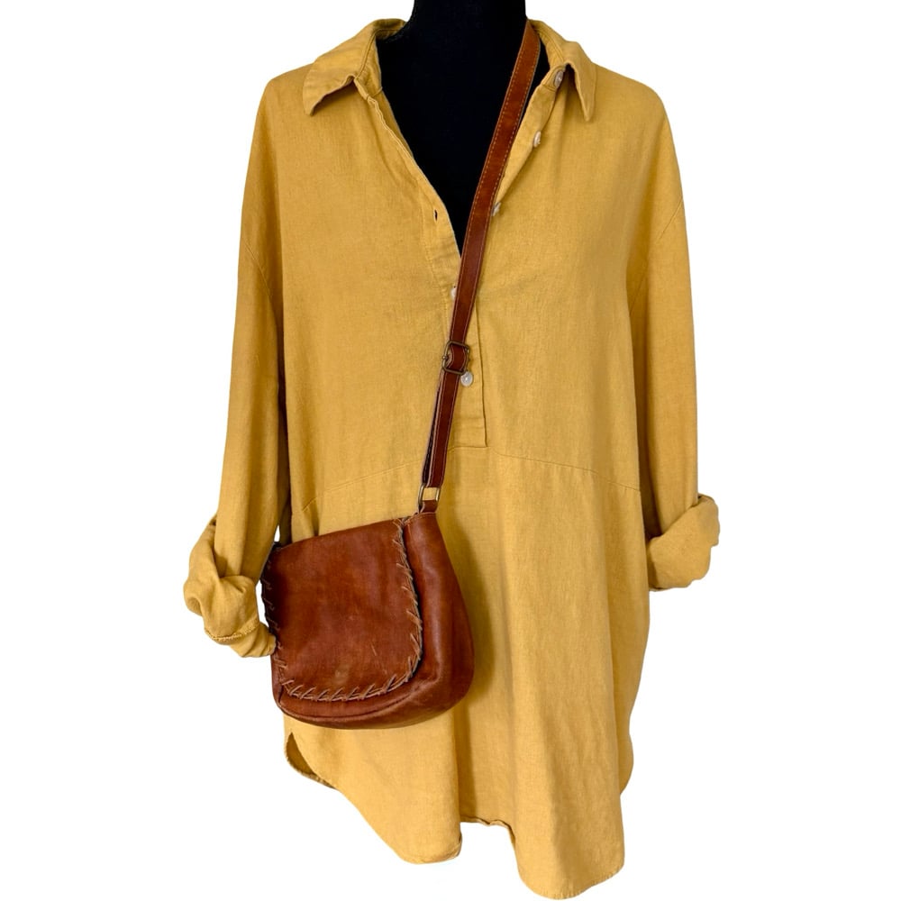 Yellow Tahari Linen Button Up Shirt Dress Tunic - Size L -Beach